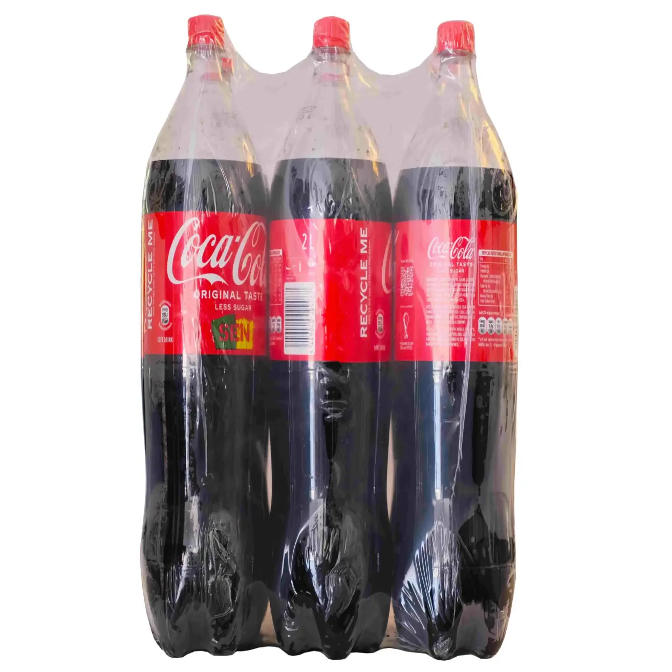 The Coca-Cola PET 2L is a 2-liter plastic bottle packaging of the iconic Coca-Cola soft drink. The bottle is made from PET (polyethylene terephthalate), which is lightweight, durable, and recyclable. It features the classic red label with the white Coca-Cola logo, maintaining the brand's signature design. The bottle is ergonomically shaped for easy handling and pouring, with a screw-on cap that ensures a tight seal to maintain carbonation and freshness. This size is ideal for sharing in family gatherings, social events, or for storing in the refrigerator for individual servings over time.